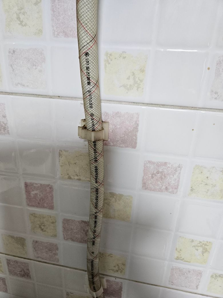 저게 오래돼서 자꾸 하나가 벽면에서 떨어져서 호스가 고정이 잘안되네요