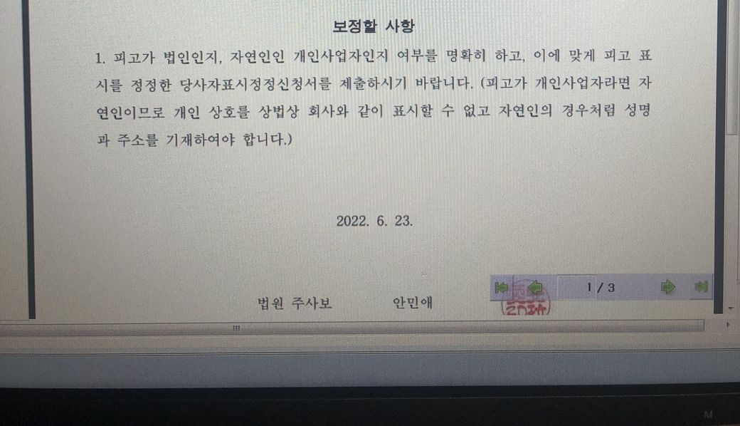 보정명령서 글에는 피고의 주민번호를 기재하라는 말은 따로 없는데 피고의 이름과 주소만 보정해서 제출하면 되나요?? 또한 소장 접수당시 피고의 사업자번호를 기재했는데요 당사자표시정정신청서 제출할때