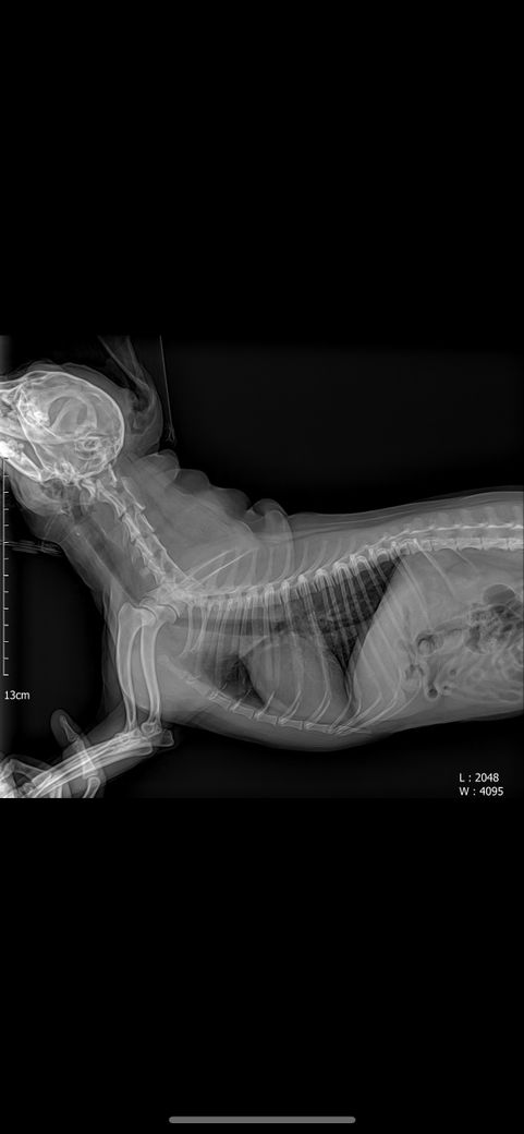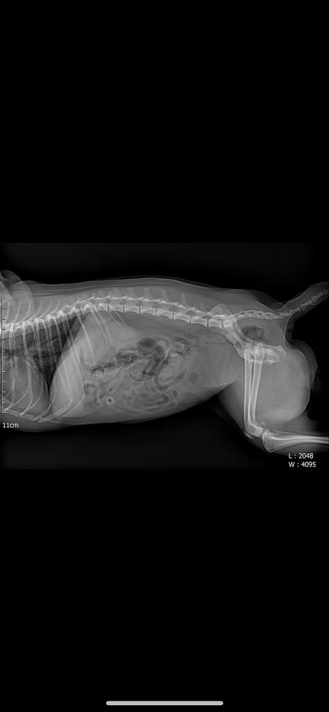 안녕하세요. 박창민 수의사입니다. 크게 문제되는 부분은 없는 거 같습니다. 또한, 엑스레이로는 정말 제한적인 정보만 얻을 수 있습니다. 더 많은 정보를 원하시면, 초음파 검사를 받으셔야 합니다. 감사합니다.