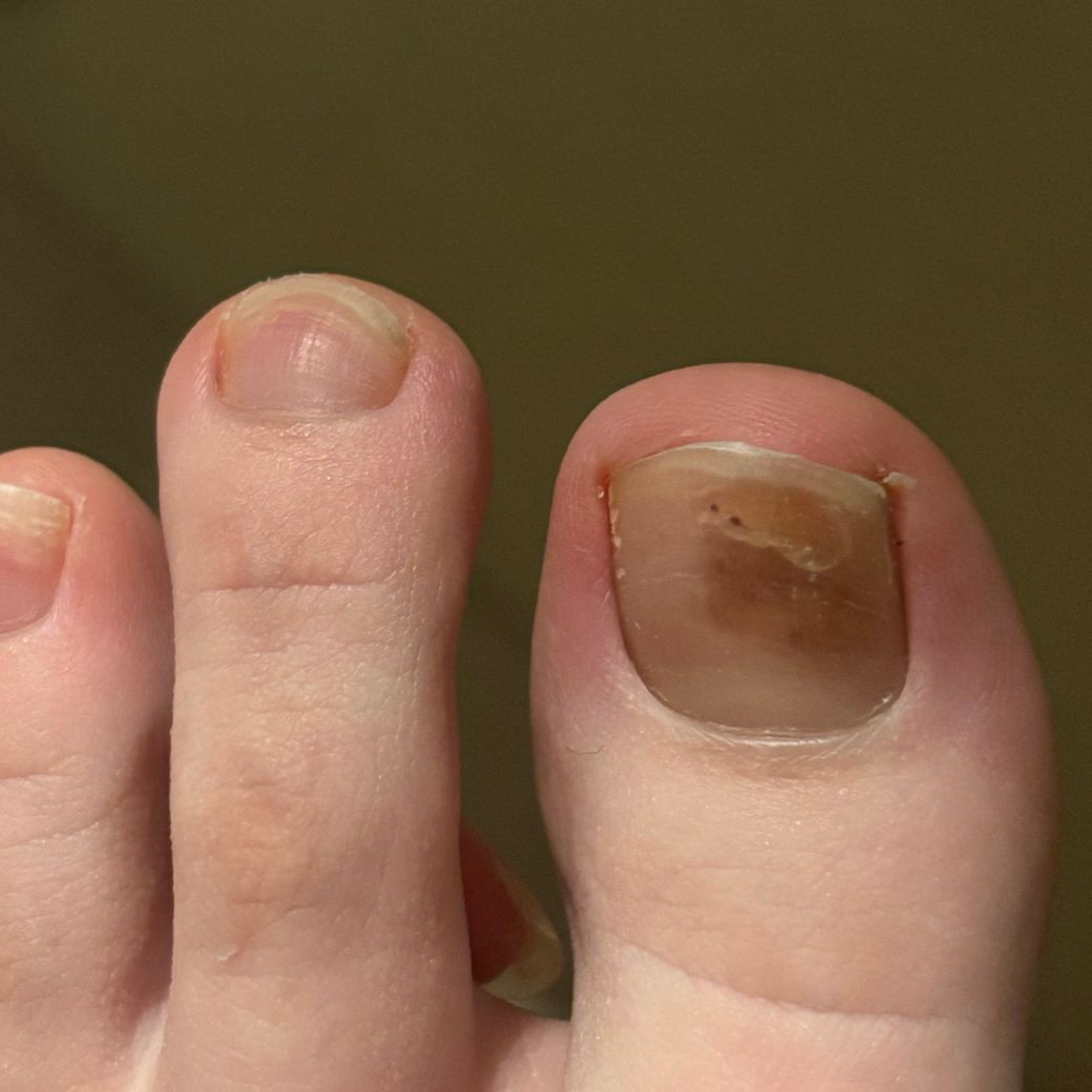 사진처럼 발톱에 멍이 들었는데 한 2달은 된 것 같은데도 안 사라지네요 처음에는 멍인 줄 알았는데 사라지질 않아요 피부암일수도 있나요?