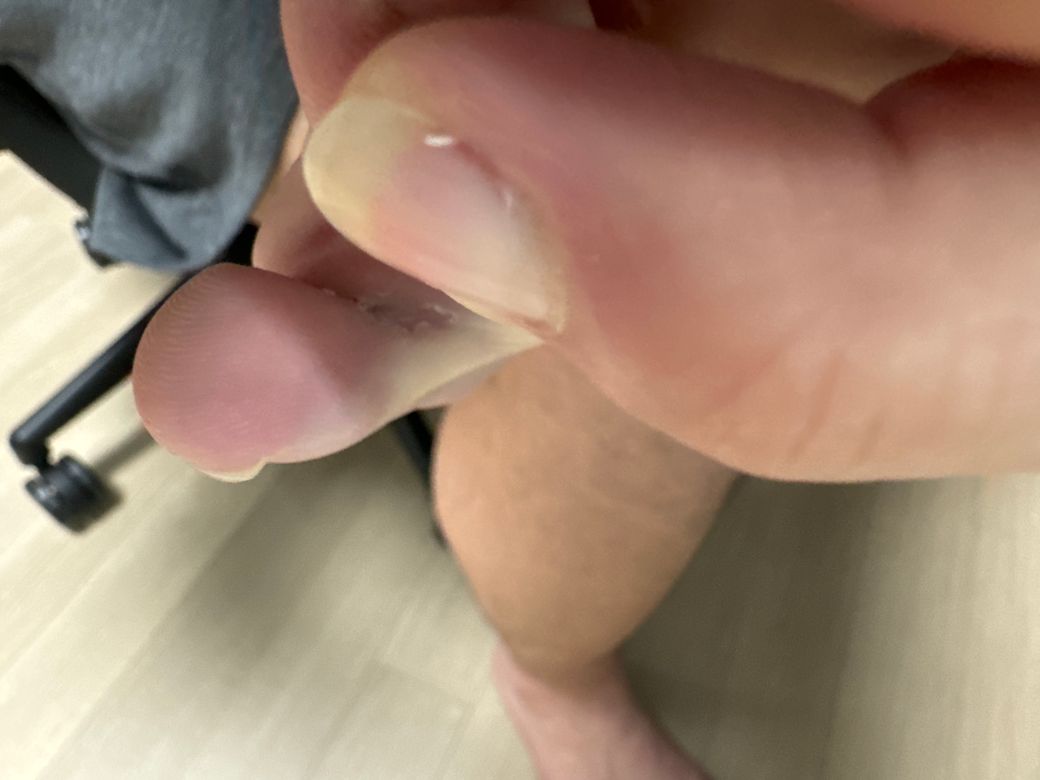 발가락이 건조하거나 마찰이 발생하는 경우에 사진과 같은 증상이 발생할 수 있습니다. 혹은 무좀과 같은 증상도 사진과 같은 증상이 나타날 수 있는 원인이 될 수 있습니다. 병원에 방문하셔서 진료를 받아보시는 것을 추천드리고, 상처 부위를 소독하신 이후 연고를 도포하시거나 밴드를 부착하시는 것이 좋겠습니다.