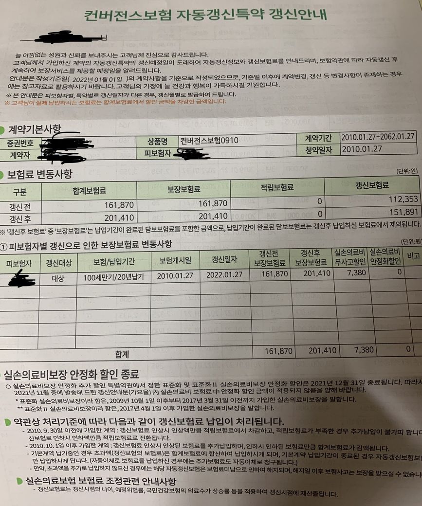 컨버전스 보험이 3년갱신이라 보험료가 처음보다 많이 올랐습니다. 보험에 대해 공부하고 있지만, 지식이 많이 없어 전문가분들에게 자문을 구하고자 글을 올립니다