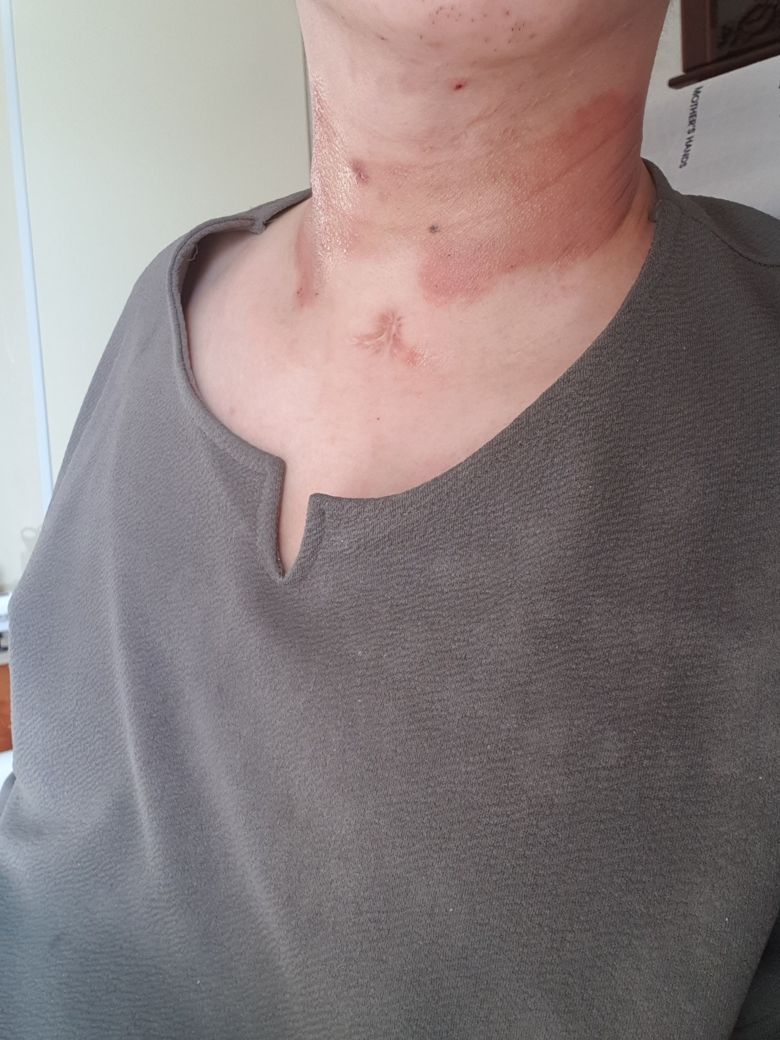 목 부분이 엄청 가려워요. 제가 하반신마비환자라 피부과, 처방받으러는 못 가고요.