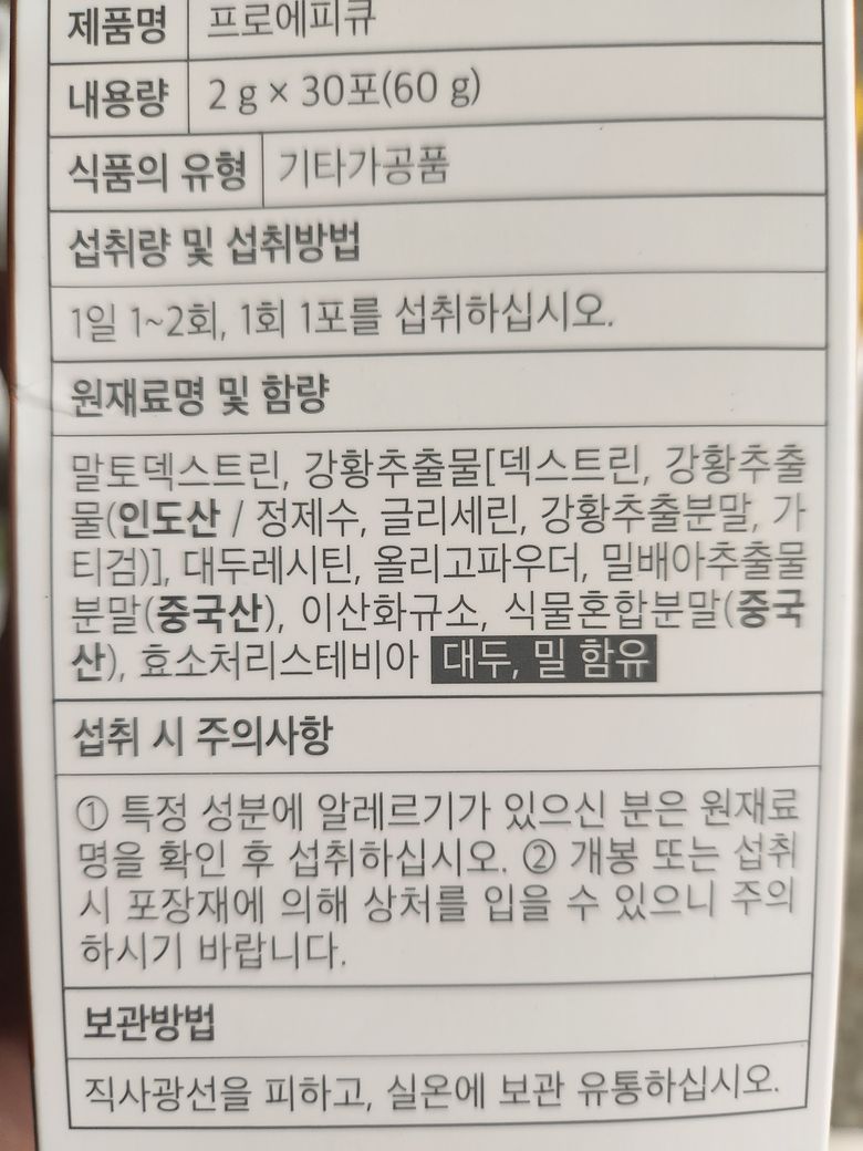 생강이 주의 3단계로 생강 알러지 있는데 프로에피큐 복용가능한가요? 성분은 사진으로 올릴게요...