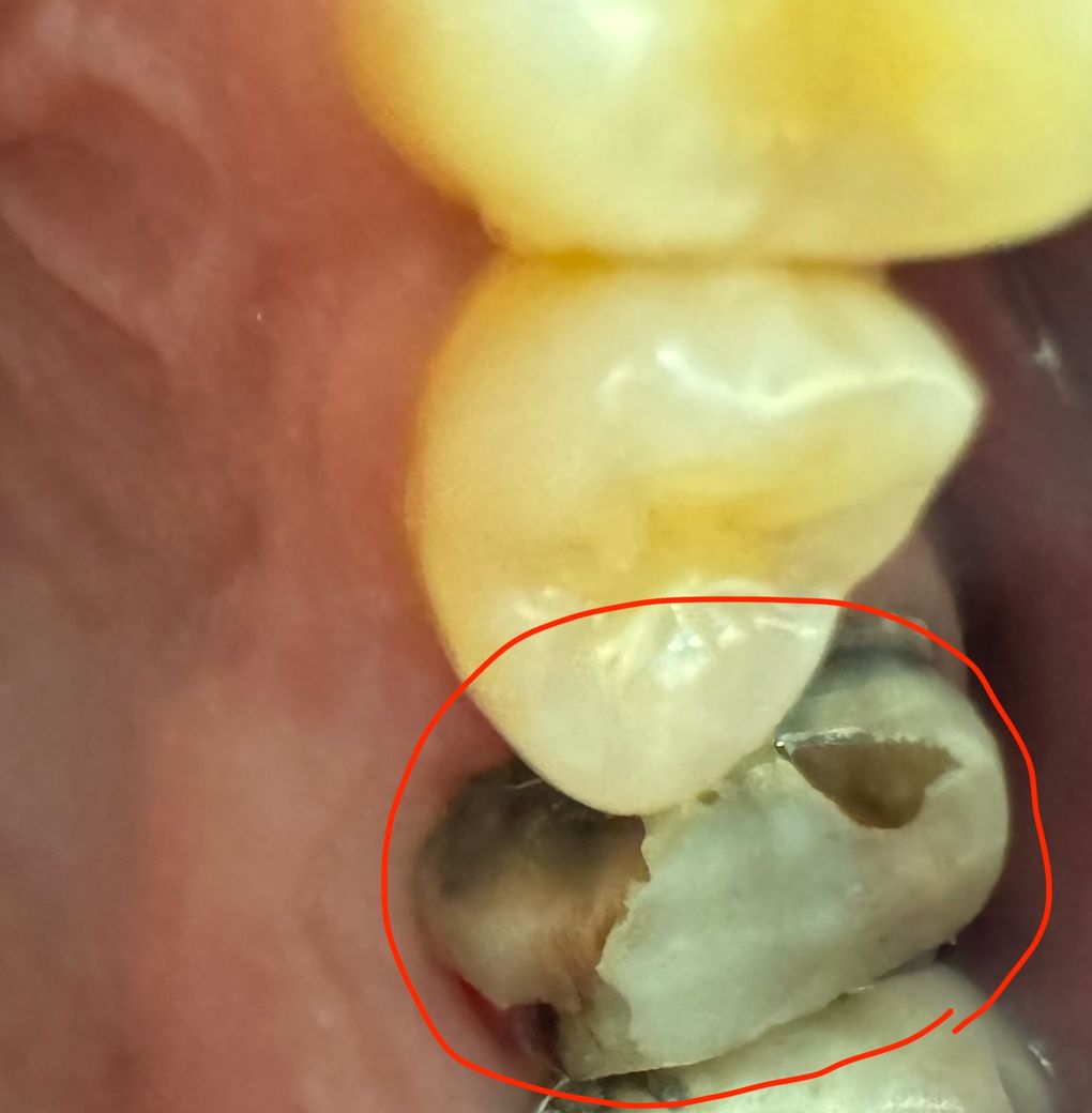 크라운이 떨어졌어요. 안 부분이 새까맣고 이가 깨져벼렸는데 임플란트 해야할까요?