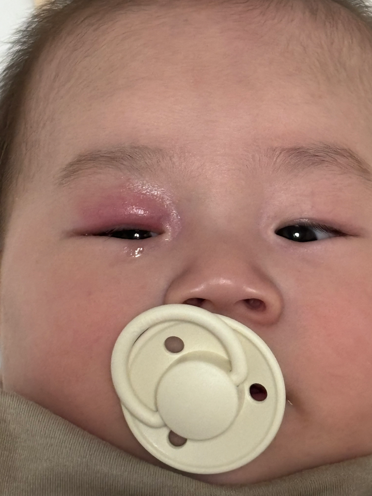 사진으로 봐서는 아기의 눈에 뭔가 지나간 것 같습니다