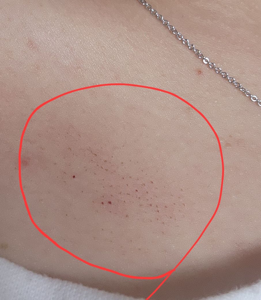 사진으로 봤을 때는 점상출혈인 것 같습니다. 부모님 말씀대로 쎄게 긁어서 매우 미세한 출혈이 생기신 것 같네요. 따로 뭘 바르거나 하실 필요는 없고 그냥 더 건드리지 말고 냅두시면 됩니다.
