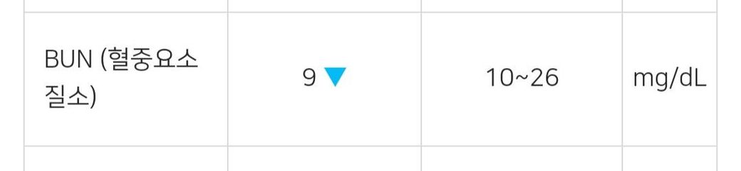 bun수치는 정상이였는데 처음으로 낮아졌어요