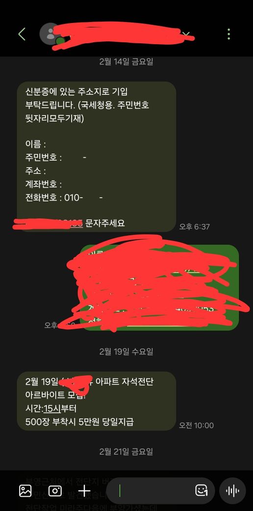 다름아닌 저에게 업무를 배정해주신 업주님 이십니다. 저는 솔직히 1~2일 전이면 몰라도 7일이나 지나서 갑자기 그런문자를 보낸 것도 이해가 안가고 아파트 주변에 버려져 있는걸 주민이 신고를 했다는데(뭉탱이도 아니고 한두장꼴).
