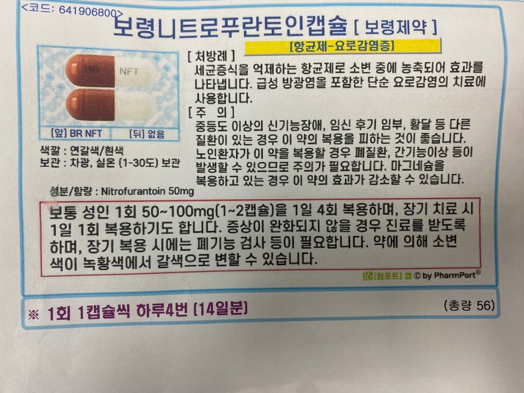 보령니트로푸란토인 복용 시 영양제 섭취방법 문의