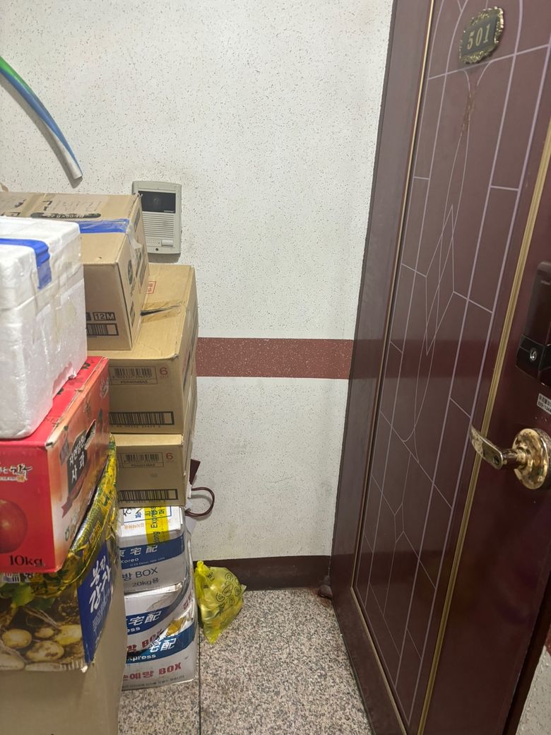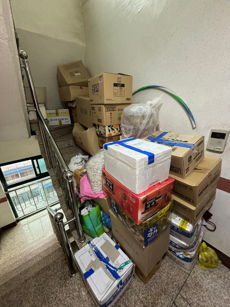 5층 한세대가 옥상으로가는 계단에 적치물을 이렇게 쌓아놓았는데