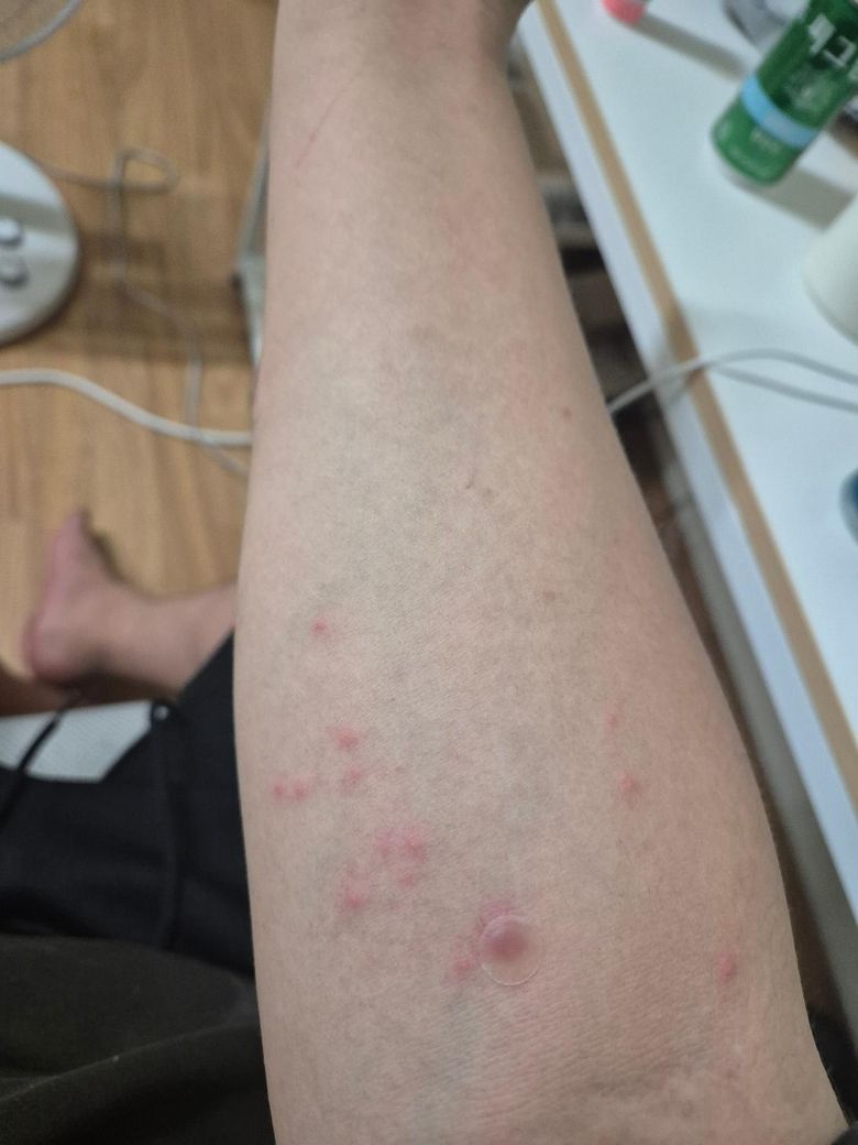 사흘전날 밤 운동을 끝내고 쉬던 중 갑자기 올라왔습니다. 배와 목쪽에도 비슷한 형상이 있지만 이 발진은 반팔티 아래 드러난 곳에만 생겼고, 모기물린것 보다 간지럽진 않습니다. 이틀이 지난 지금은 더 빨개졌고 간지러움은 거의 없습니다. 무슨 발진일까요? 항히스타민제 복용 또는 스테로이드 연고 사용이 필요할까요?
