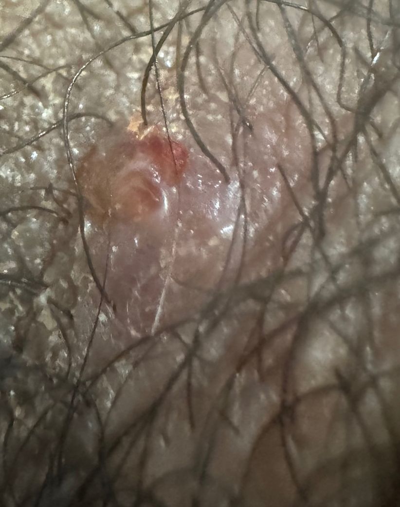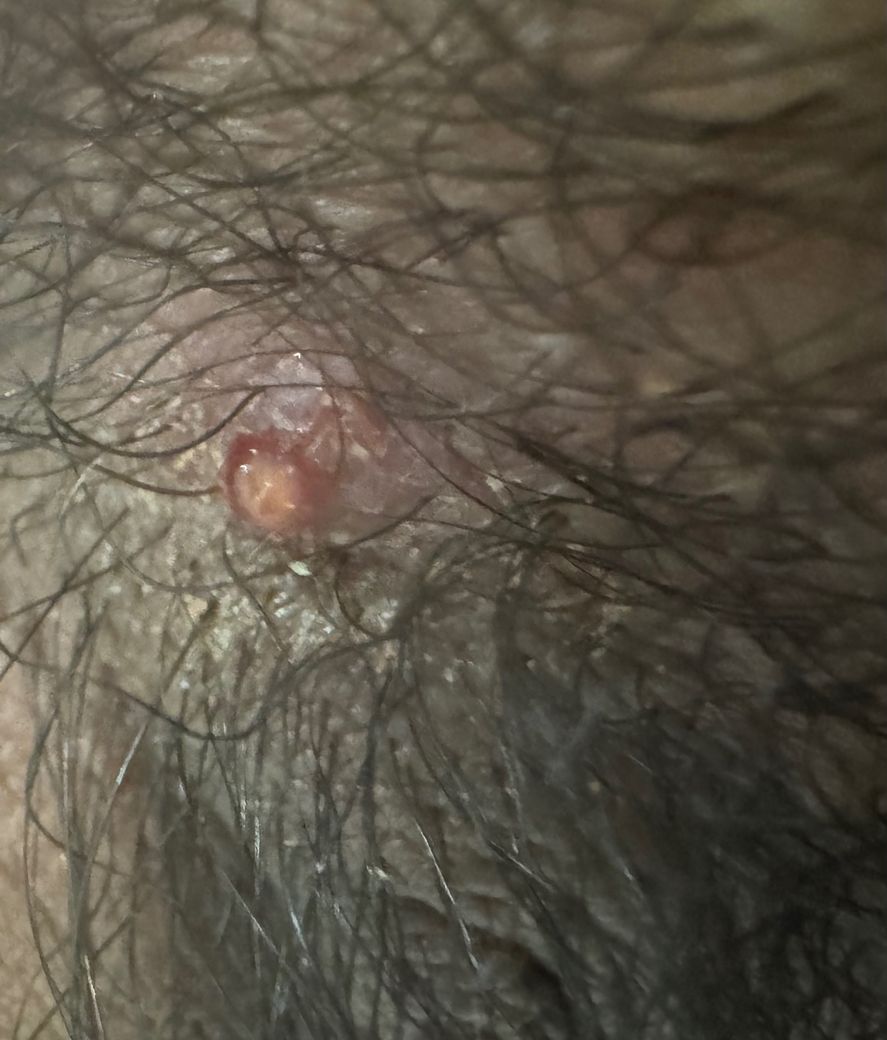 주변에 발적이나, 열감 양상은 보이지 않아, 연조직염 양상은 아니나, 피부병변 관련하여 염증소견은 있어보이며, 피지낭종의 경우 주머니가 있을 수 있고, 관련하여 제거되지 않으면, 지속적으로 재발하는 경향도 있을 수 있어요. 보다 적절한 평가 위해 피부과 또는 사타구니 쪽으로 보이는데, 비뇨의학과 내원하셔도 될것이라 사료됩니다.