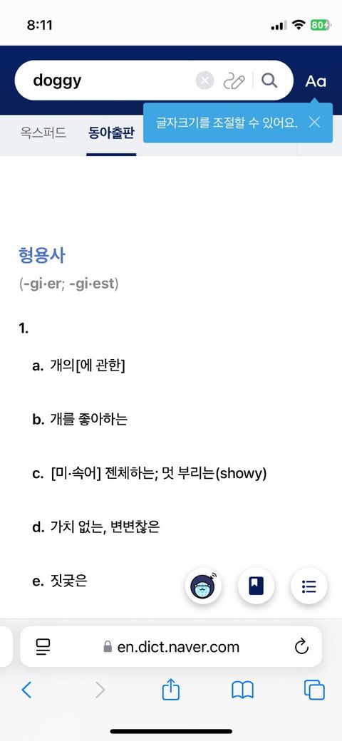 형용사 밑에 “a. [A] 개의, 개 같은” 뜻에서 ‘[A]’의 뜻이 뭘까요?