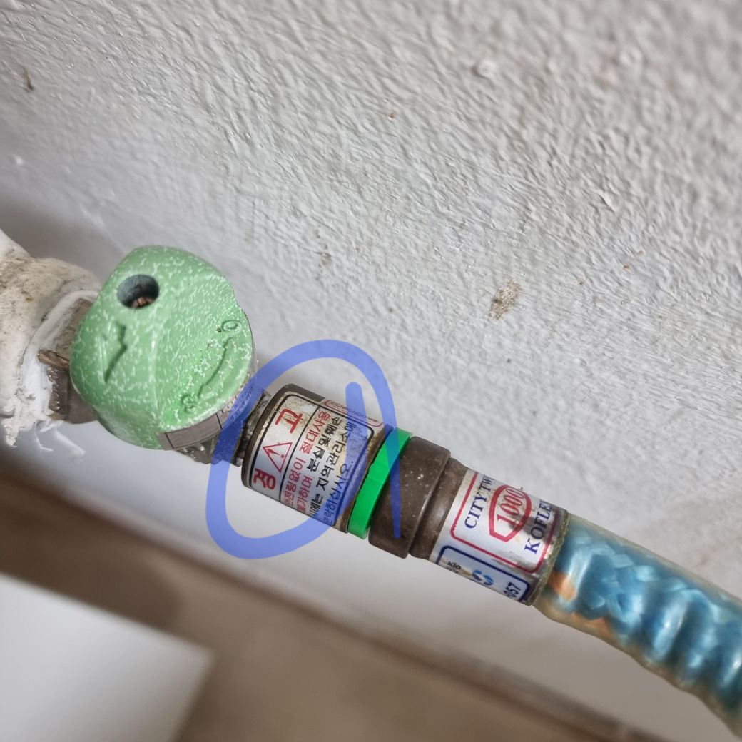 가스레인지를 설치한 상태로 이리저리 옮기기다가 혹시 연결부위가 헐거워질까봐 동그라미친 부분을 건드렸어요.