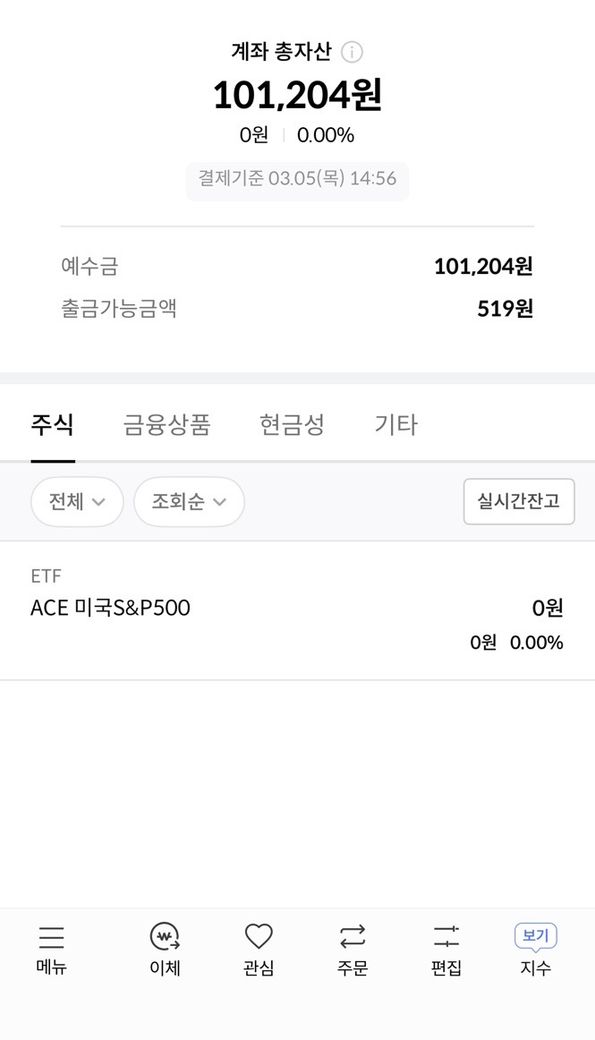 ETF를 ACE S&P500을 4주 정도 샀습니다