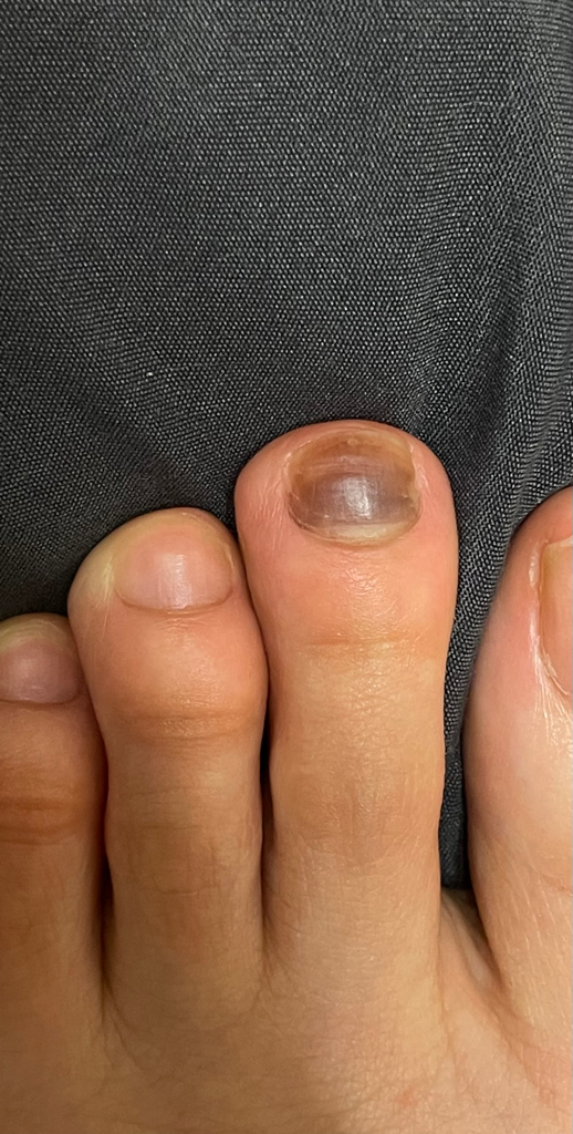 발톱아래에 멍이 든 상태시군요. 자연적으로 뽑힐 가능성이 있는 상태로 보입니다. 하지만 지금 당장 뽑아버릴 상태는 아닐 것으로 보이니 정형외과를 방문해 상담받아보시기 바랍니다.