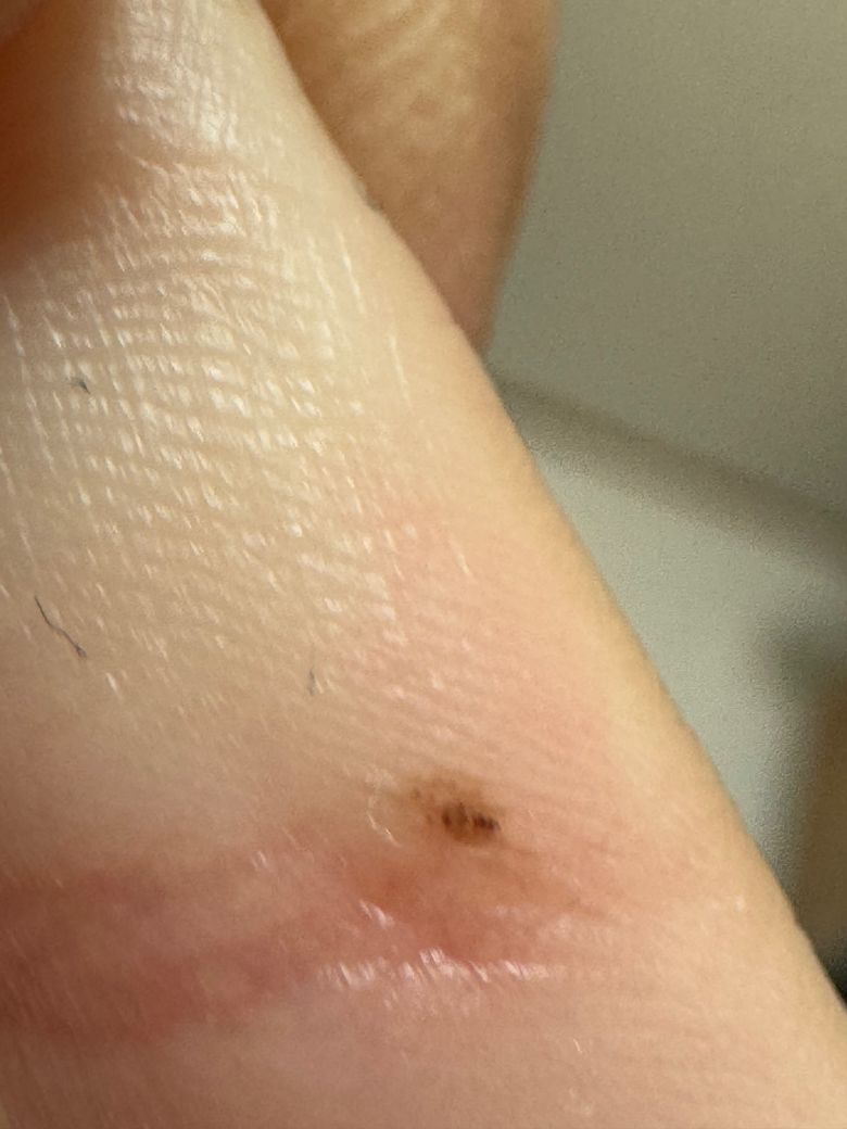 현재 사진 기준으로는 크기가 매우 작고 색이 비교적 균일해 보이며 급성으로 생긴 딱지나 작은 외상 후 색소침착 가능성도 있습니다. 아이들은 미세한 상처 후 갈색 색소가 남는 경우가 흔합니다.