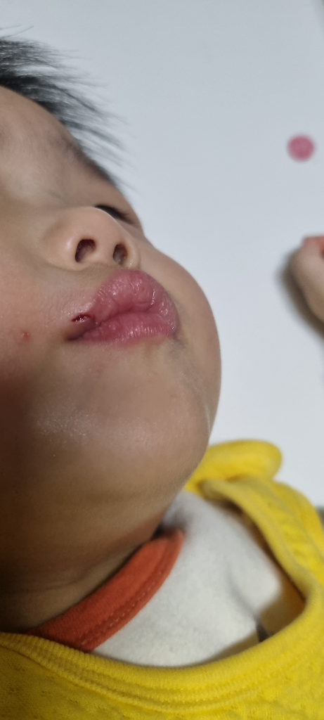 이것은 흉터가 생길 수가 있기 때문에 입술선에 맞추어서 봉합을 하는 것이 좋을 것 같습니다