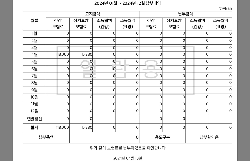 현재 4월분이 청구되어진 상태인데 해당 금액을