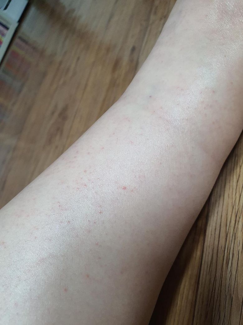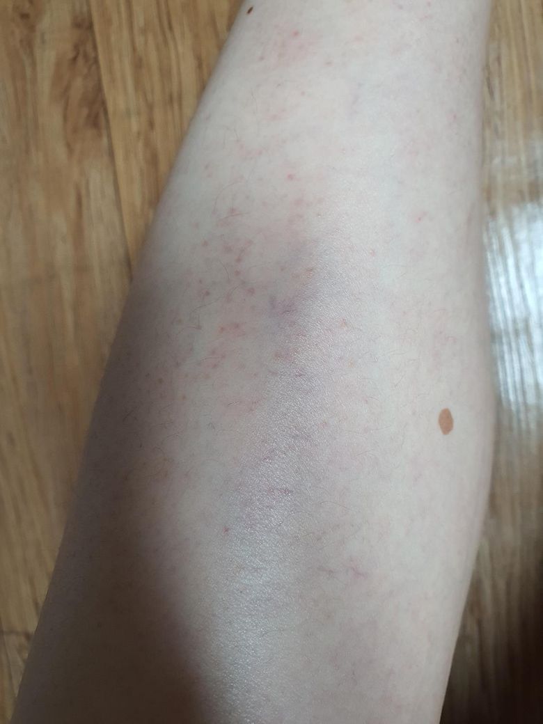 종아리에 붉은 반점이 생긴지 3일됐는데 조금씩 번지고 있어요. 간지럽지도 않고 오돌도톨 만져지지도 않아요.