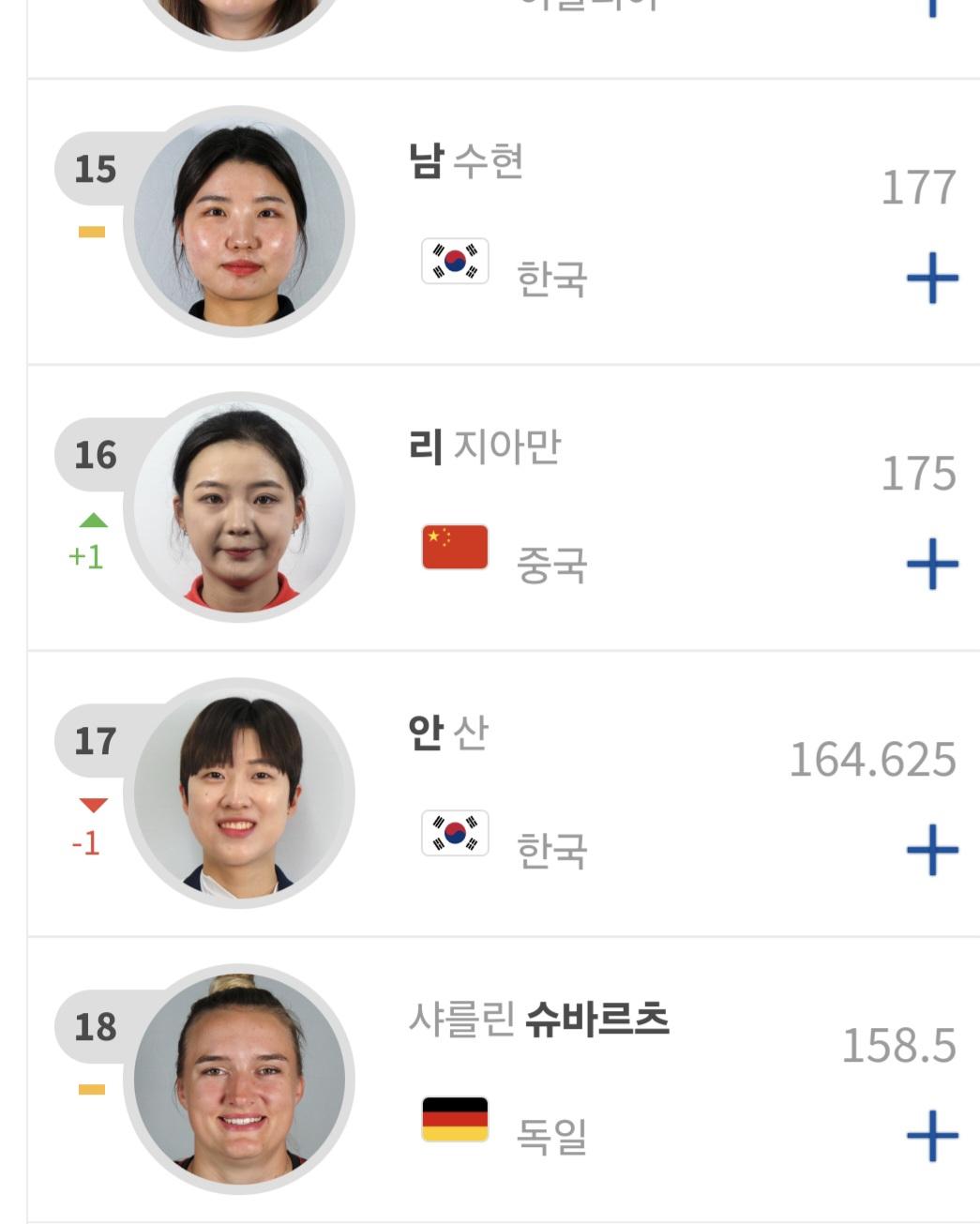 안산 선수의 현재 세계 랭킹이 17위로 확인되고 있습니다.