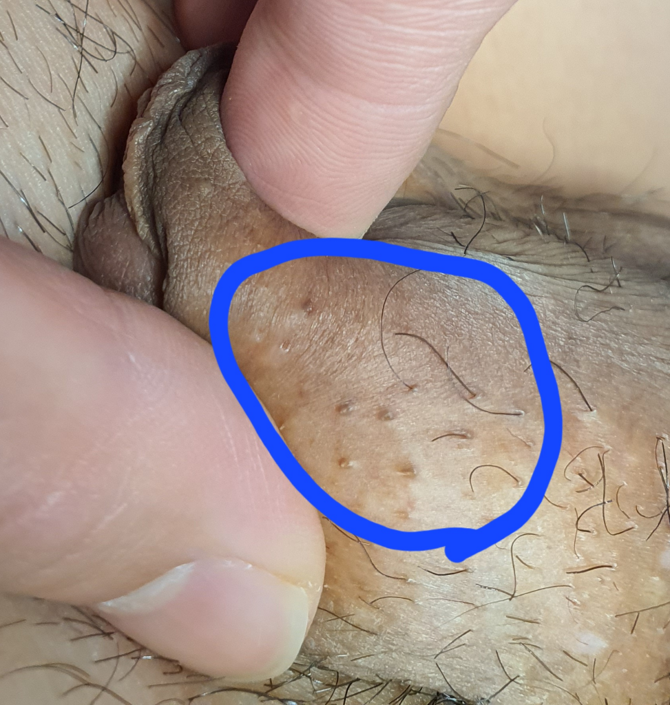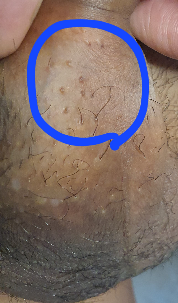 사진상으로는 곤지름보다는 모낭이 커진 것으로 보여집니다.