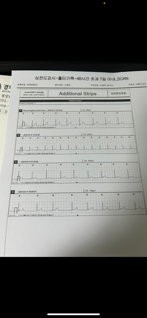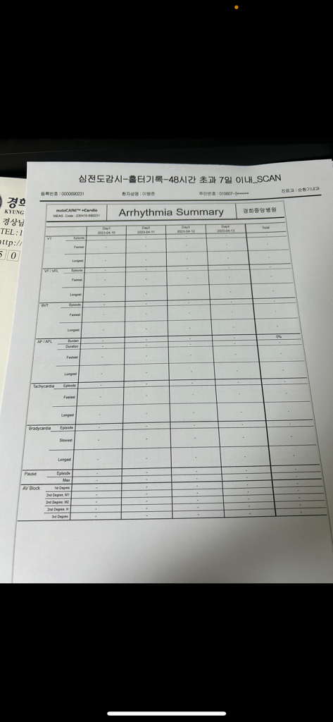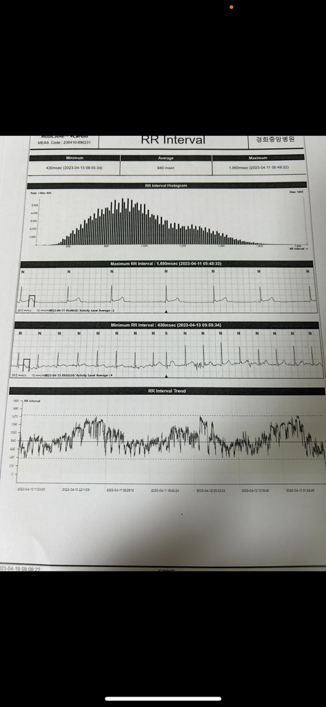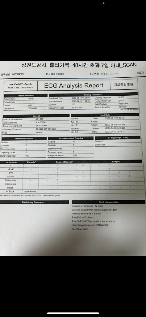 4월초에 흉부CT,72시간홀터,심전도,엑스레이,피검사 정상소견