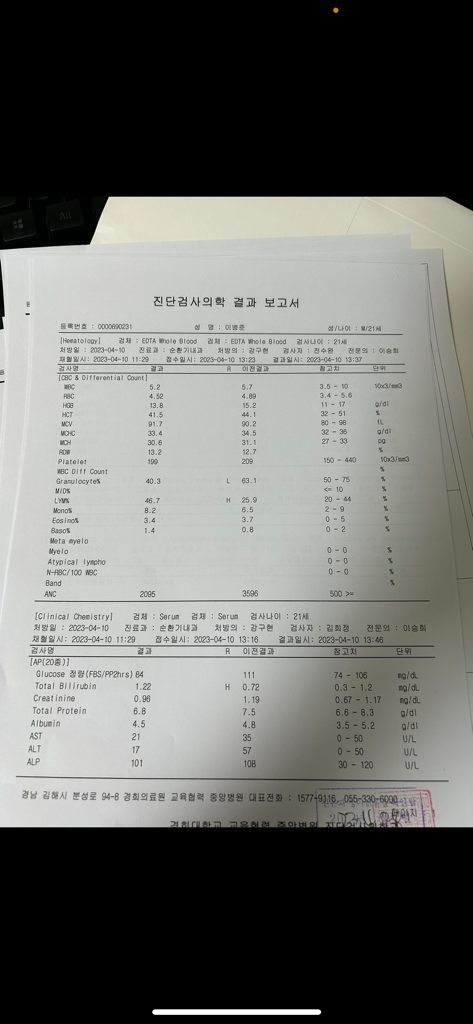 검사기록지와 제 증상들을 한번 봐주시고 답변부탁드립니다!