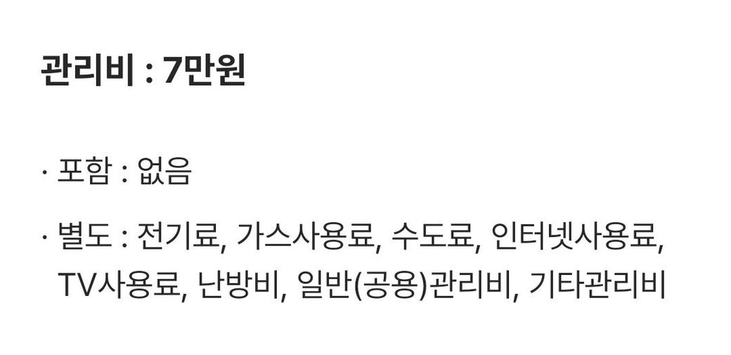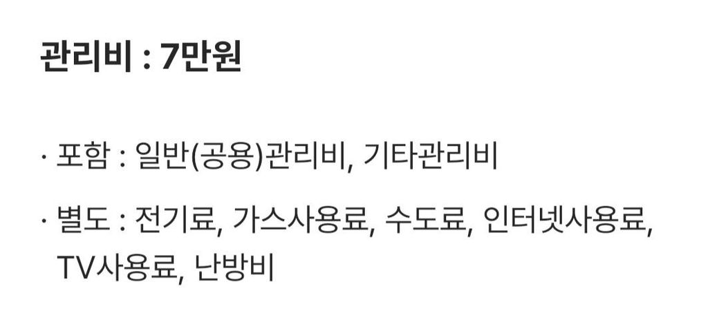 대략 7만원 근처에서 공과금 따로 나온다고 생각하시면 되겠습니다.
