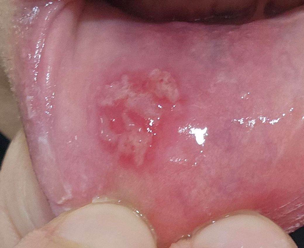 사진처럼 입술 안쪽이 헐어서 어제부터 아파요. 어떤 거 때문에 그럴까요? 조치를 어떻게해야하는지? 알보칠 발라도 될까요?