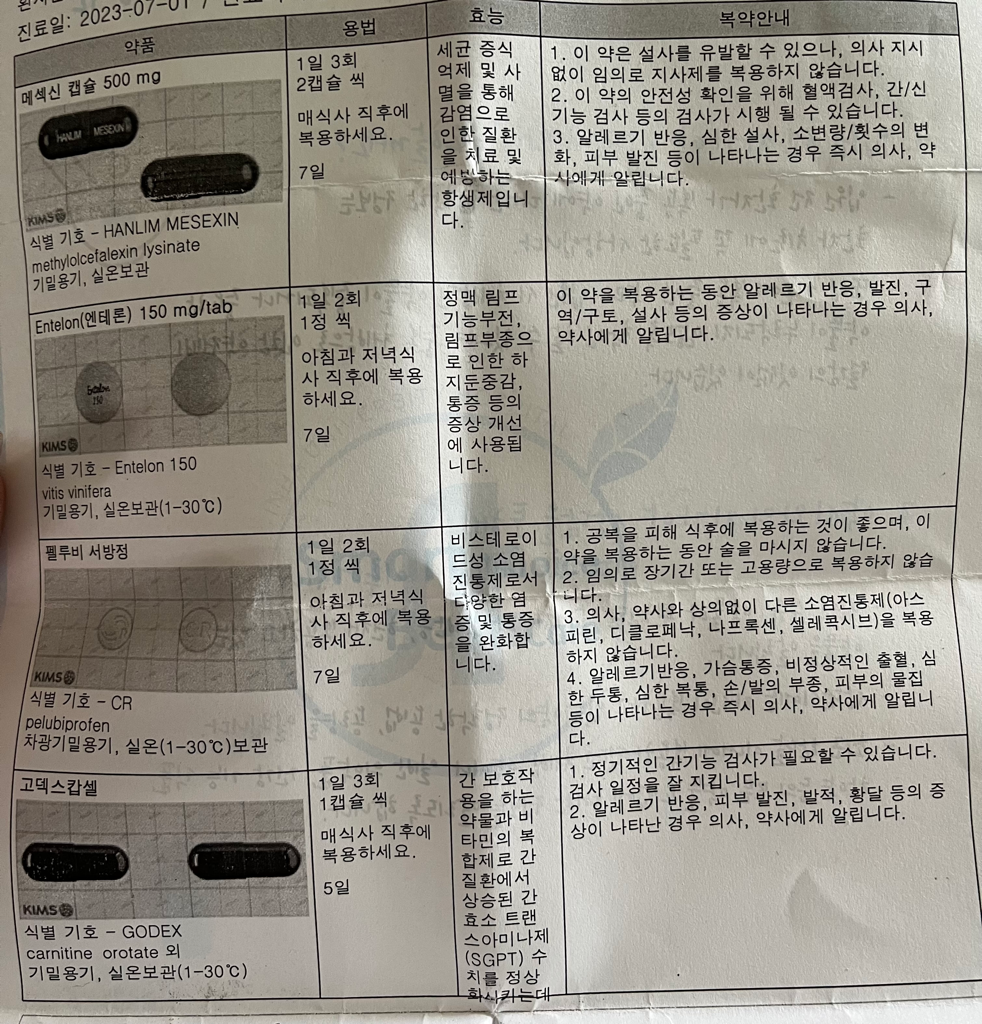 발등 봉합수술과 피부이식을 했습니다. 퇴원 후 약을 처방 받았는데요. 약을 먹으니까 퇴원 후 이틀 째 부터 제목에 쓴 것처럼 몸살 기운이 나타납니다. 머리를 움직이면 쓰러질거 같이 어지럽습니다. 약제과에 문의 해봤는데 복용중단하라는 말은 없었고 타이레놀 복용을 권유 하셨습니다. 어제 외래 갔을 때는 상처 부위에 염증은 없다고 하셨고요. 어떻게 해야 하나요... 타이레놀 먹으면 괜찮을까요ㅠㅠ