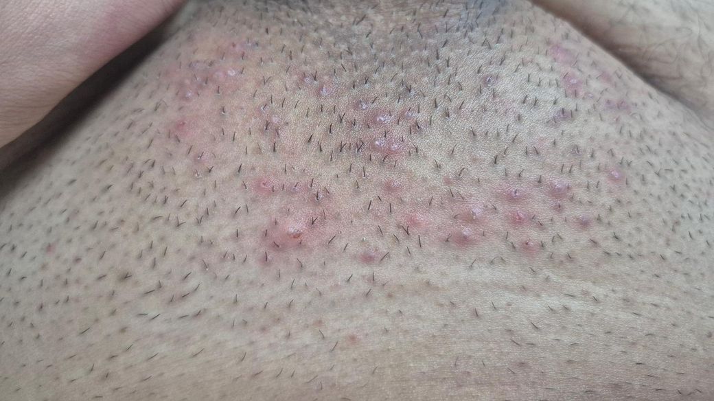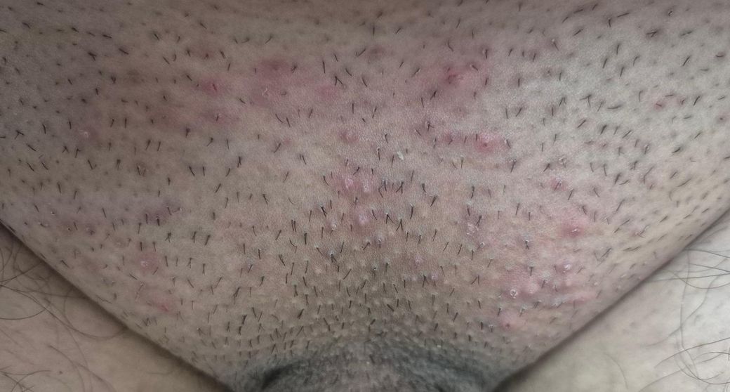 며칠전 면도기로 제모 했는데 그 후에 이렇게 됬습니다. 가려움증도 있구요 설마 성병인가요..?