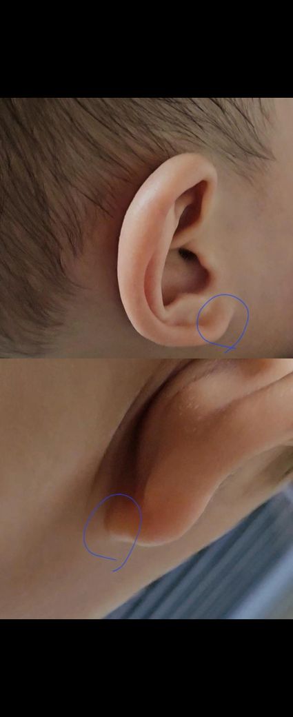 귓볼앞쪽이나 뒷쪽에 얼굴이랑 이어지는 부분이라 그런지 동그라미 한 부분이 주름진 모양이더라구요!