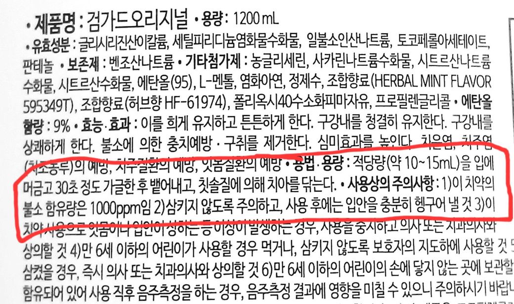 그리고 사용 후 헹구라고 되어 있어서 리스테린의 사용법이랑 완전 달라서 혼동이 옵니다