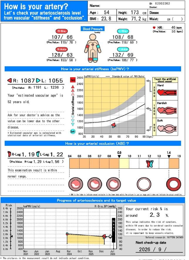 결론은 정상이라는 건데요. 천대정도 숫자나온 것이 동맥의 경직도입니다. 딱딱하냐는 거죠. 그거 정상범위입니다. 아래 숫자있죠? 1점 얼마 나오는 거요. 그게 동맥이 막혔는지 보는 검사인데 정상입니다. 2024년보다는 수치들이 좀 좋아진것 같네요.