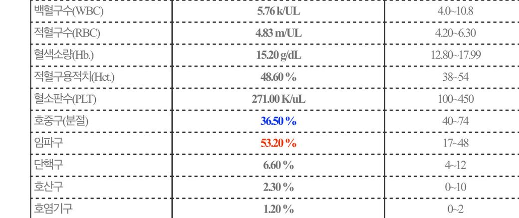 호중구 수치와 임파구 수치가 정상 범위를 벗어났는데 괜찮나요?