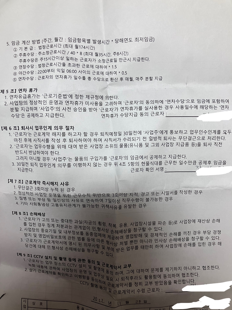 도와주세요 !!근로계약서가 제대로 되어있는지 알려주세요