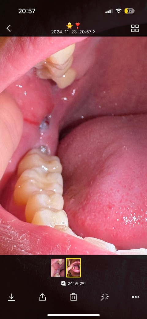 어금니로 볼쪽을 씹었는데 잇몸이 찢어지며 매뵥사랑니 위쪽에 하얀색부분이 나온거 같은데 병명과 치료과정이 궁금합니다