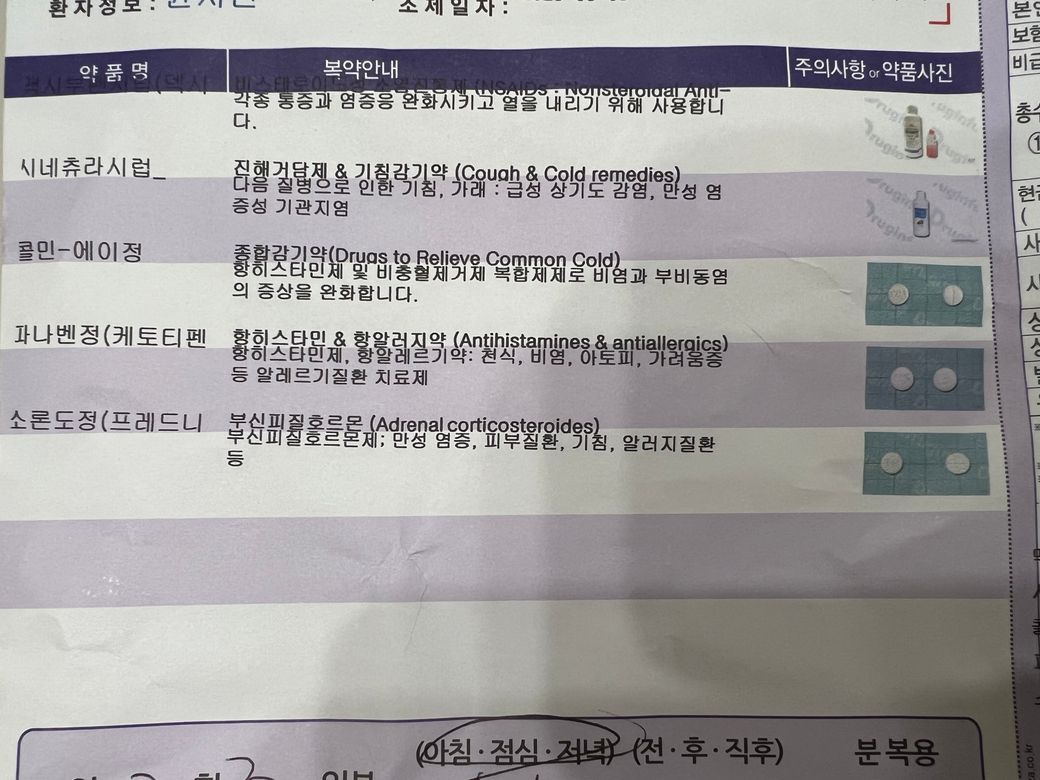 오전에 열이 38.7도 까지 올라서 소아과에서 진료를 받고 약을 처방받았습니다