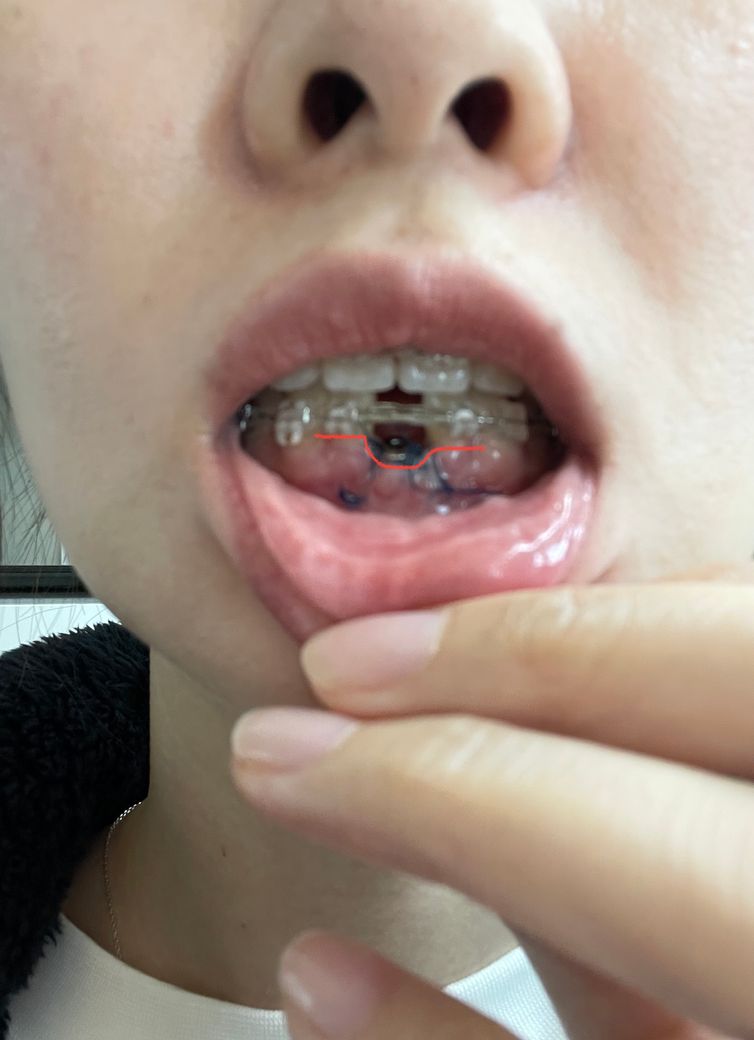 보통 옆의 이와 잇몸이 나란해야 되는데 수술이 너무 속으로 된 것 같습니다. (뼈이식+절개+나사박고 봉합했어요)