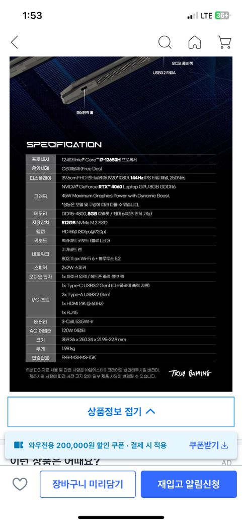 - i7-12650H, RTX 4060, 16GB RAM, 250GB SSD는 현재 고사양 게임을 원활하게 실행할 수 있는 상당히 좋은 사양입니다.