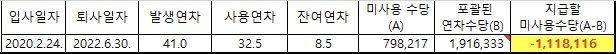 여기에서 (기 사용분 + 기지급 연차수당 개수) 를 제외하고도 남는 것이 있다면 사용할 수 있습니다.