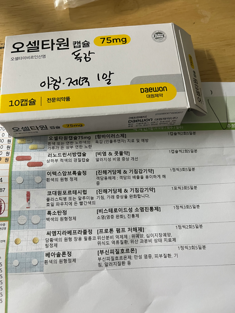 독감약은 5일 다 먹어야하고 증상이 가라앉더라도 끊지마세요.
