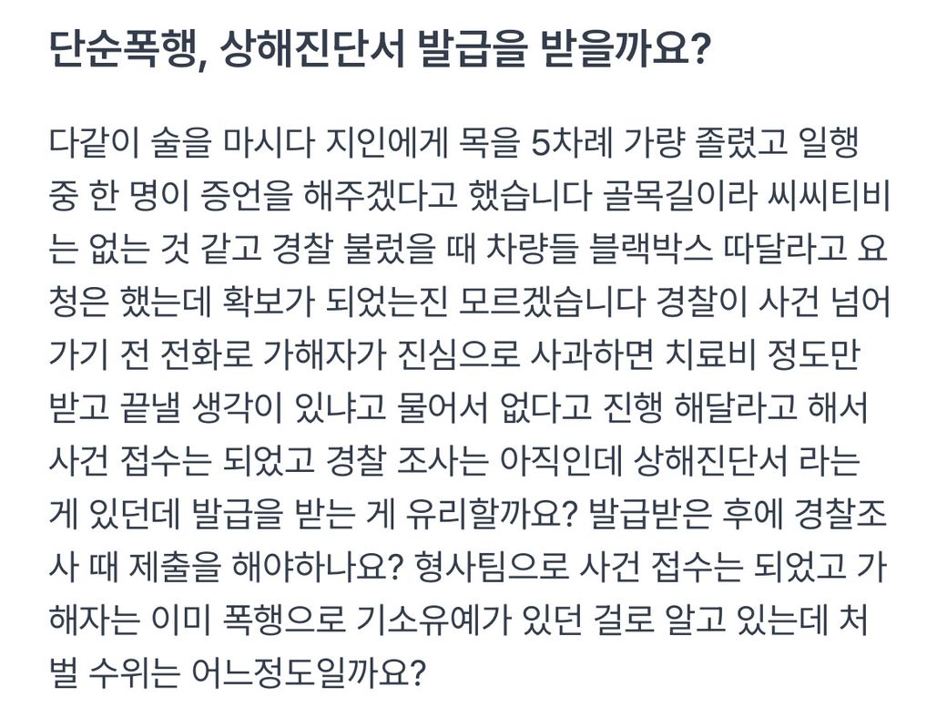 이렇게 내용을 올렸었는데 형사에게 블랙박스 확보되었냐 물었더니 블랙박스 확보는 모르겠고 그때 당시 가해자가 인정을 했다 라고 하셔서 그럼 조사는 언제 받냐 여쭤보니 그 당시에 진술서 작성해서 끝났다고 하시는데 전 상해죄로 넘기고 싶어서 진단서 제출을 하고 싶은데 이럴 경우 어디로 제출해야 되나요?