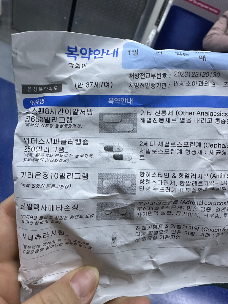 그리고 세파계 항생제도 가능성이 높으니 이 약들은 먹지 않는게 좋을듯하구요.