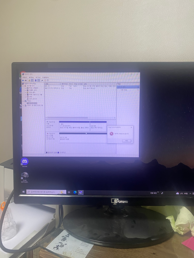 이제 디스크 관리를 들어가서 디스크 초기화 버튼이 나오는데요