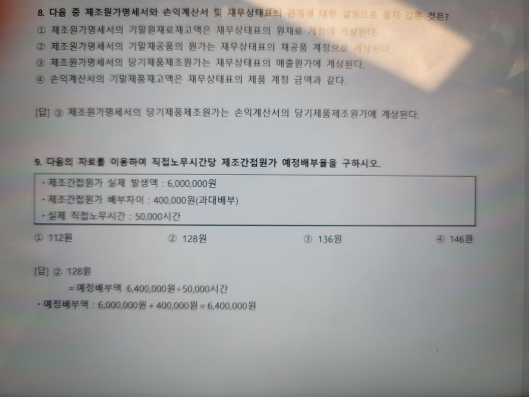 예정제조간접비÷예정직접노무시간총액=예정제조간접비배부율 아닌가요? 왜 문제에서는 실제를 나누어주는거죠?