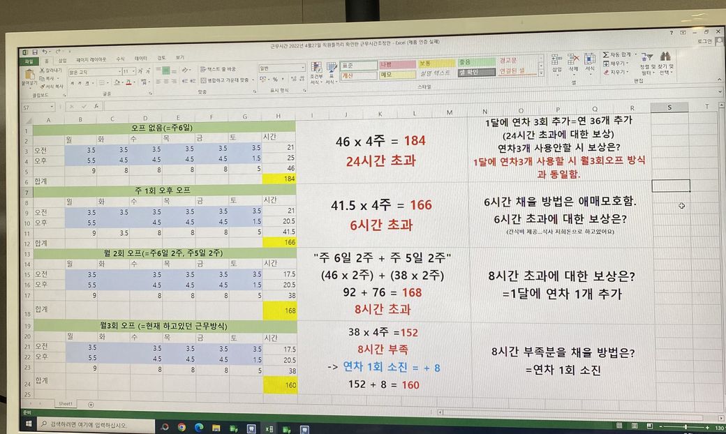 아마 3번째나 4번째 표대로 근무를 하게될 것 같아요.