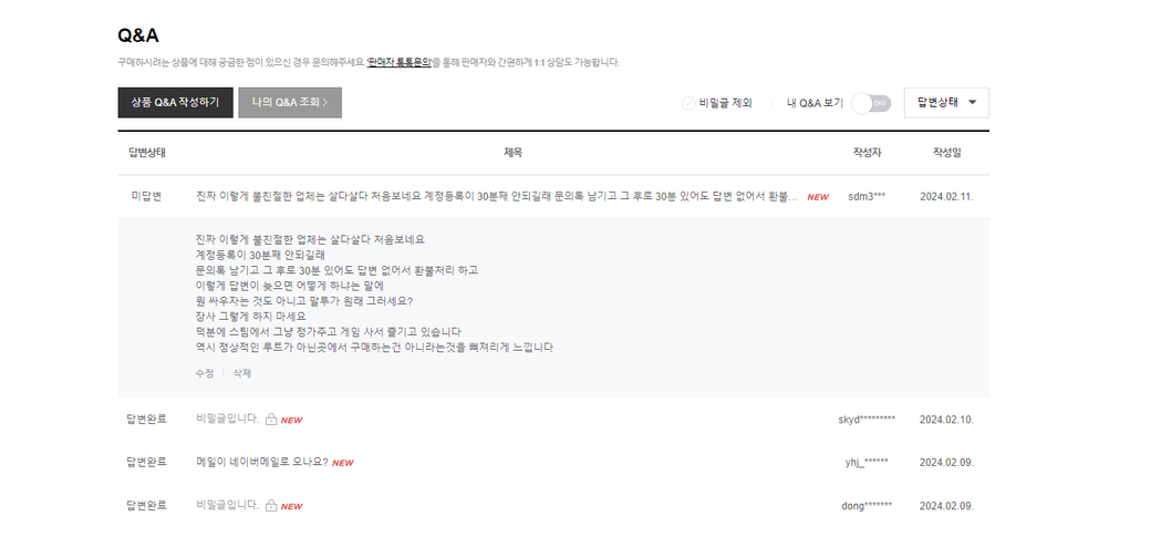 해당 판매글 게시판에 아래와 같은 내용을 작성했습니다